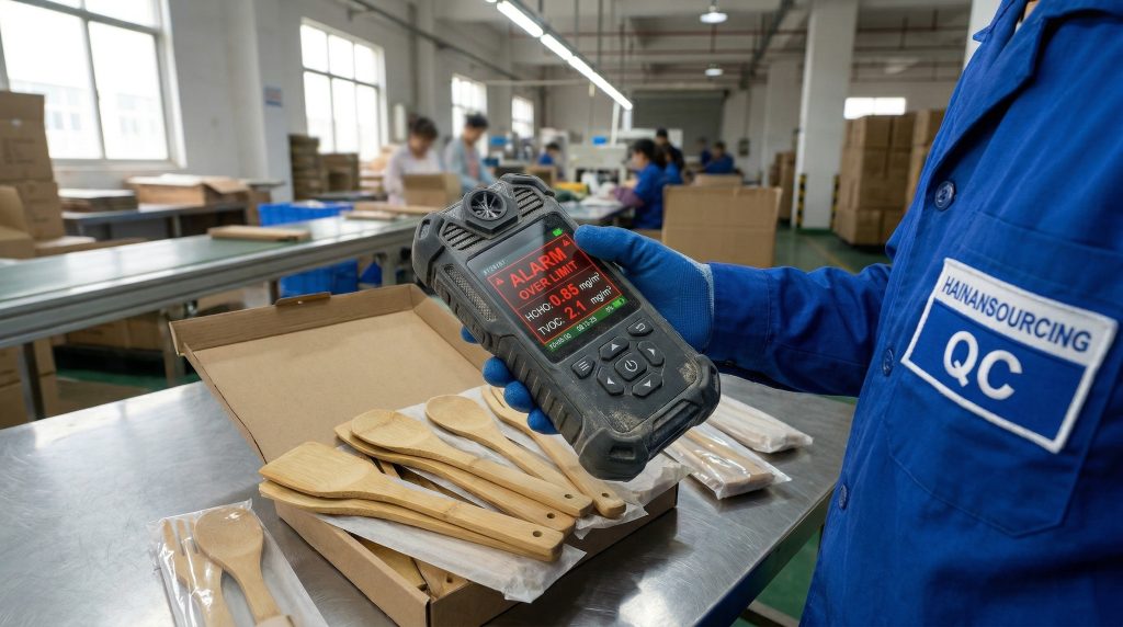 - Test the Moisture Content (MC): This is a hard metric. Before leaving the factory, bamboo products usually need their moisture content controlled strictly between 8% and 12% (depending on the destination climate). When I do an inspection, the first thing I pull out is my moisture meter. If a factory doesn’t even own this tool, or if the reading is over 15%, that batch is almost guaranteed to grow mold during transit.
